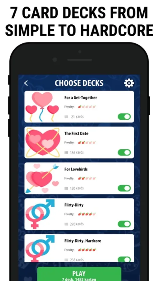 + 1500 game cards of various difficulty. From the most simple and innocent to really hardcore
