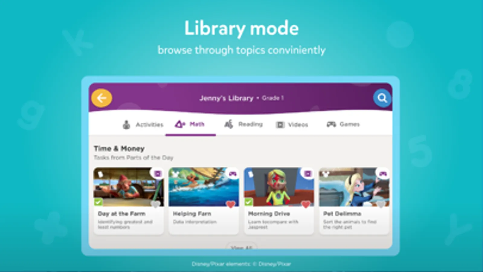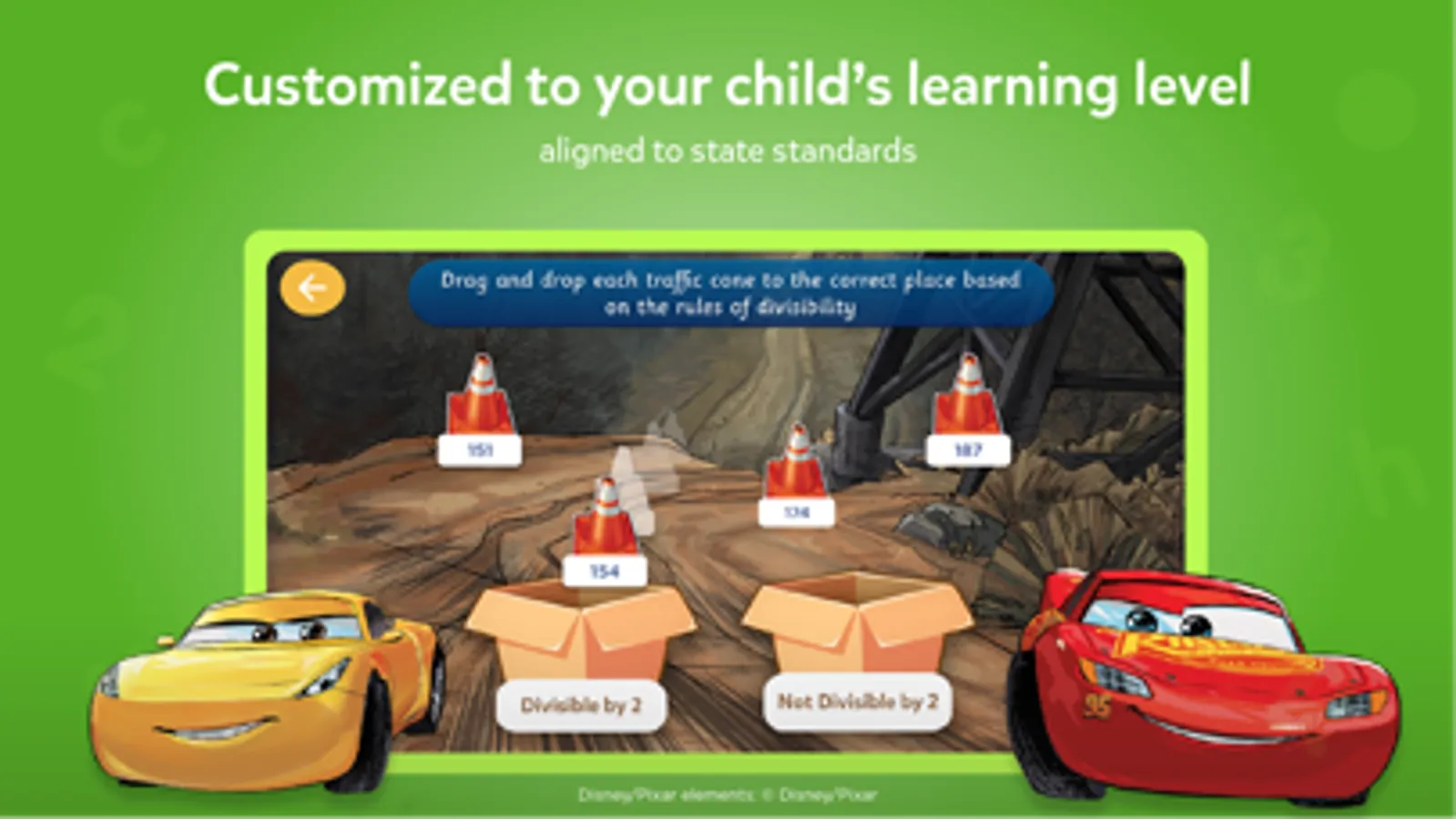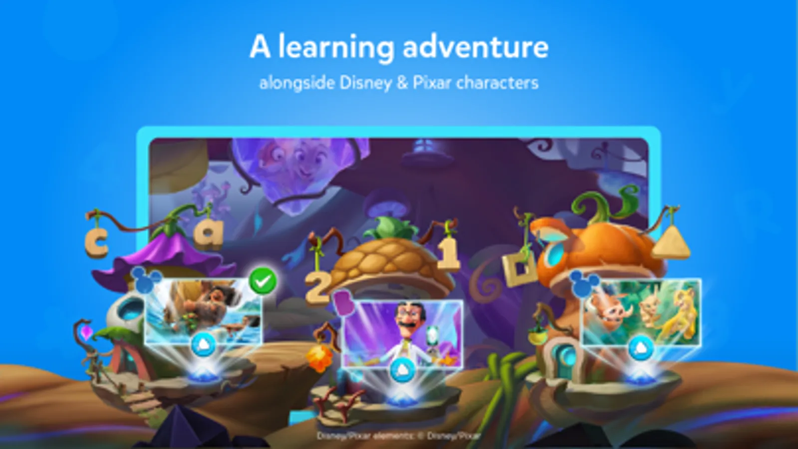 - A guided learning adventure featuring iconic Disney and Pixar characters like Buzz Lightyear, Elsa, Lightning McQueen, and more