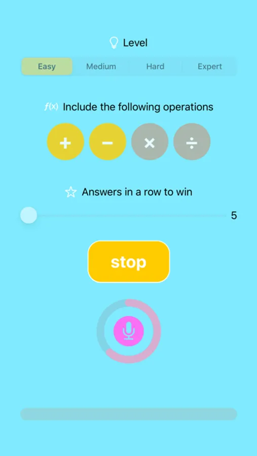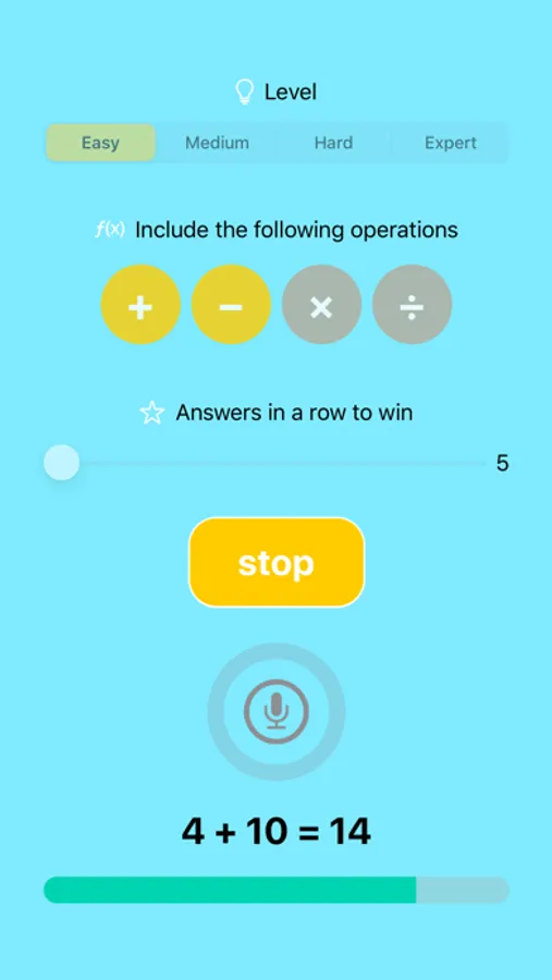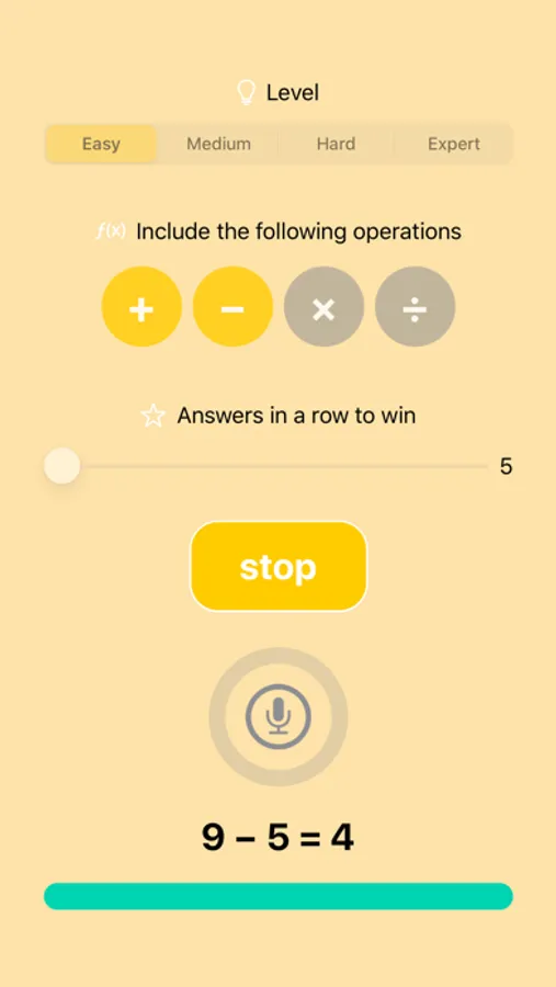 The app tells you calculations aloud, and you have to respond out loud within the time limit. The app automatically recognizes your voice, and provides you with the correct answer when needed. Give the right answers in a row to win!