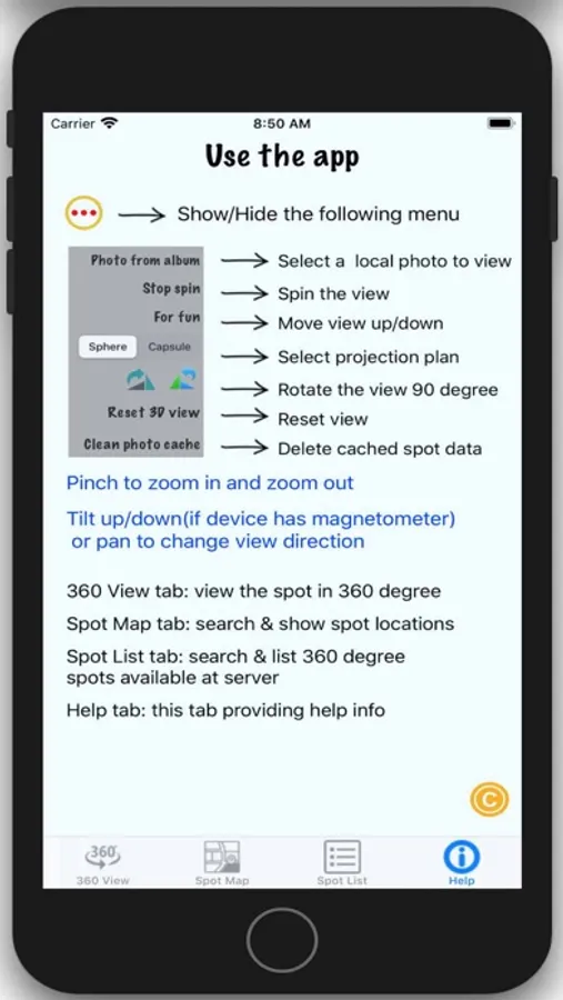 VR-360: view the hot spot in the virtual reality of 360-degree. It also shows the title of that spot. Users can config it in their way to view the scene. They can even tilt the device to see from different angles.