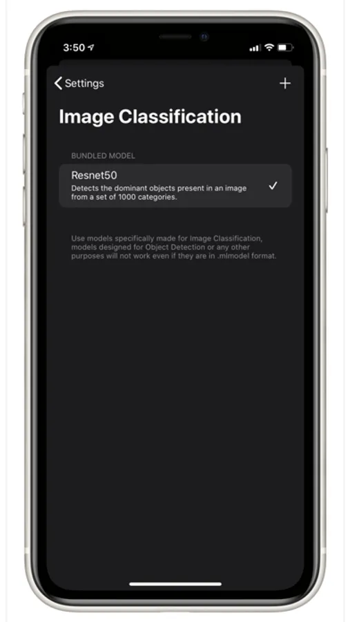 Resnet50 Model bundled with this app for Image Classification is free, and open source model.