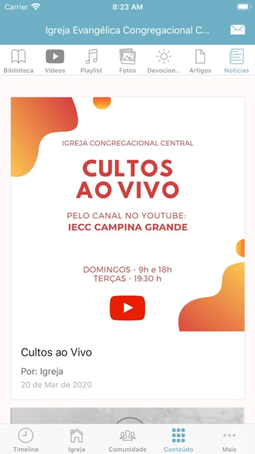 Aplicativo criado para conectar os membros da igreja, facilitando sua comunicação e unindo todos os conteúdos da igreja em um só lugar. Receba em primeira mão as notícias, avisos, vídeos, eventos e tudo mais que a igreja envolve.
