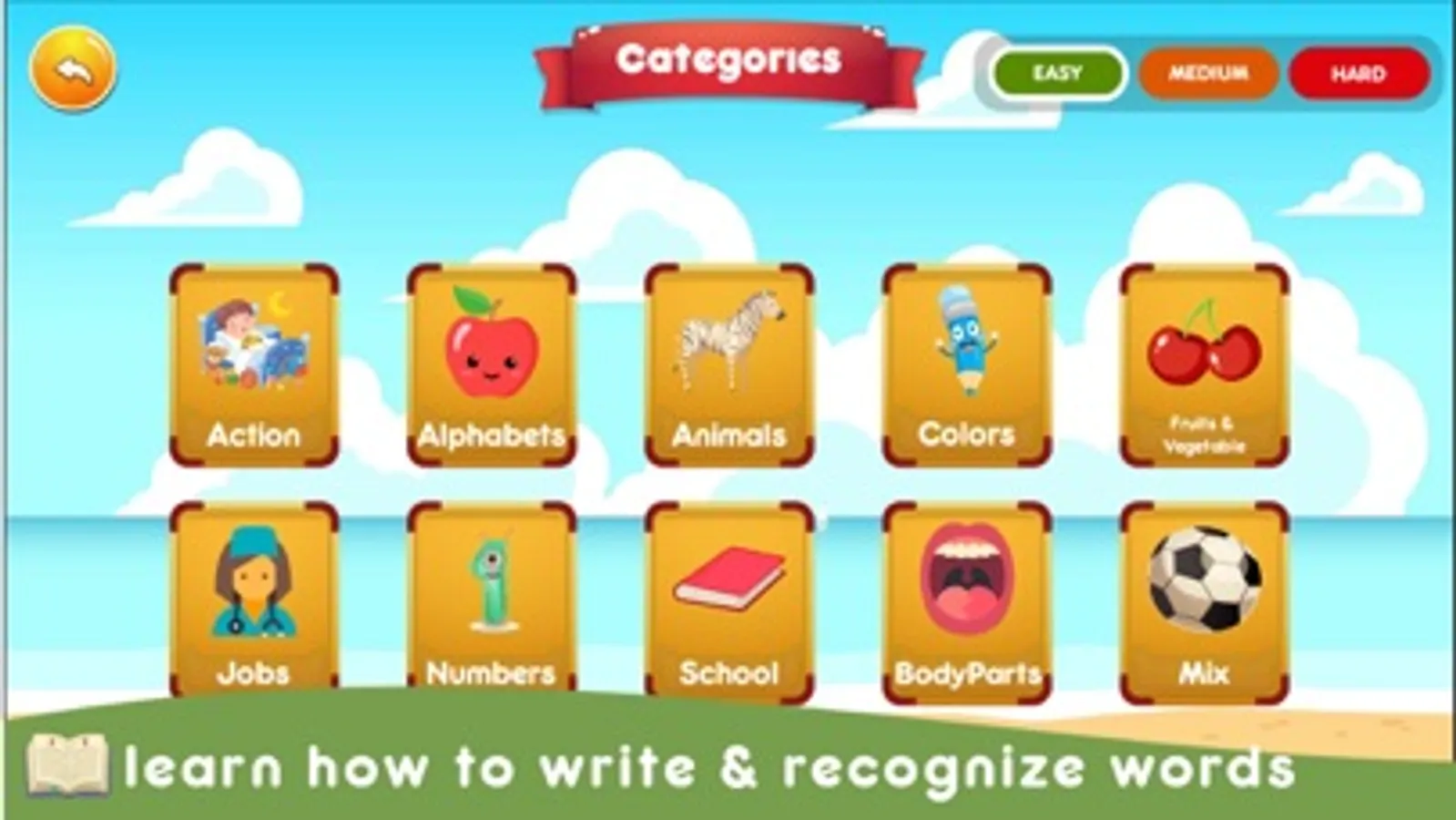 ii) Spelling Puzzle Mode : create a word correctly using picture or sound in each mode.