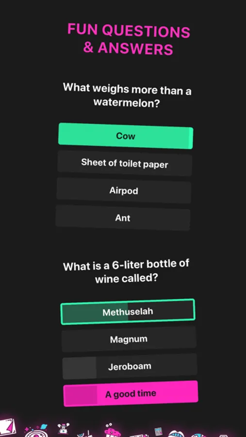 • Choose from question packs like Movies & TV, Sports or Animals
