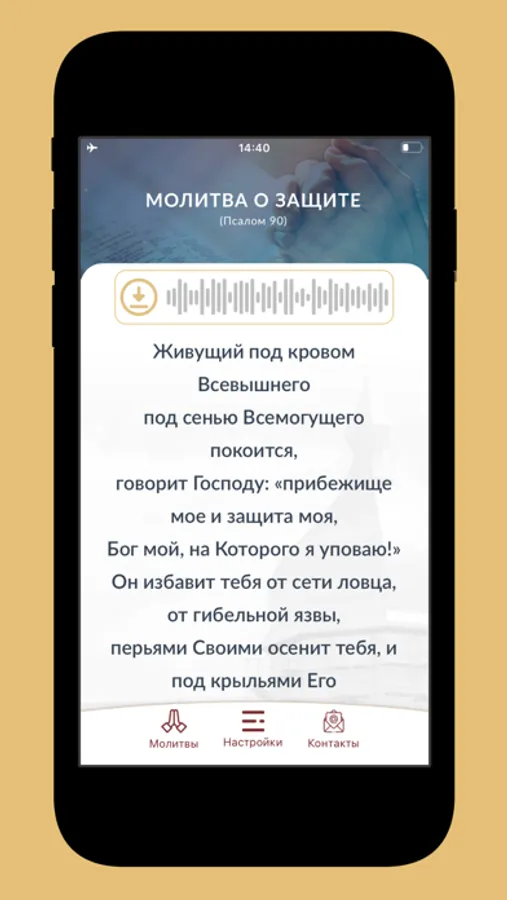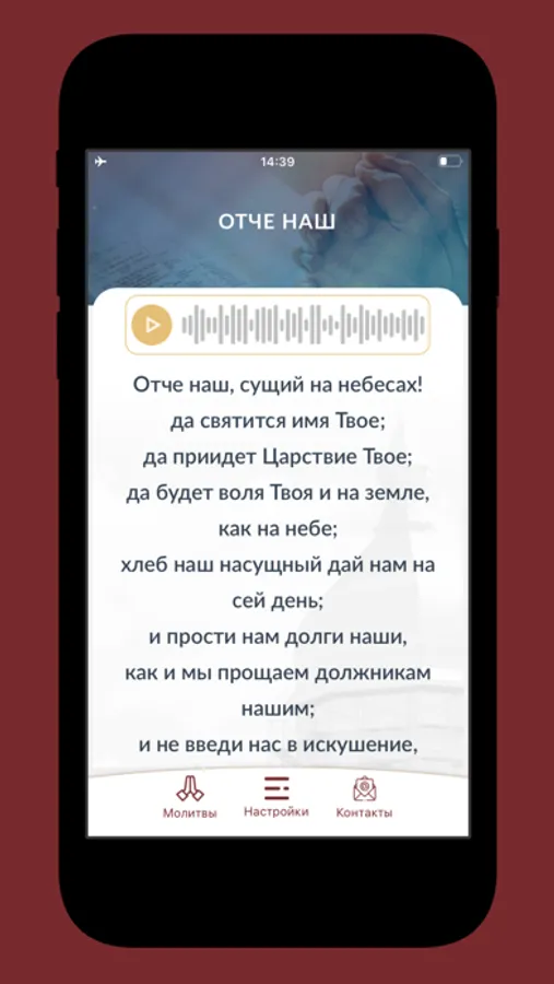 Приложение «Молитвослов» даёт Вам тексты Священного Писания и примеры молитв, которые Вы можете использовать для ежедневного обращения к Господу. Молитвы и тексты Писания также доступны для прослушивания в аудитоформате. Если Вы хотите, чтобы о Вас и Ваших нуждах молились другие христиане, если Вы нуждаетесь в духовном ободрении, используйте опцию «Обратная связь».