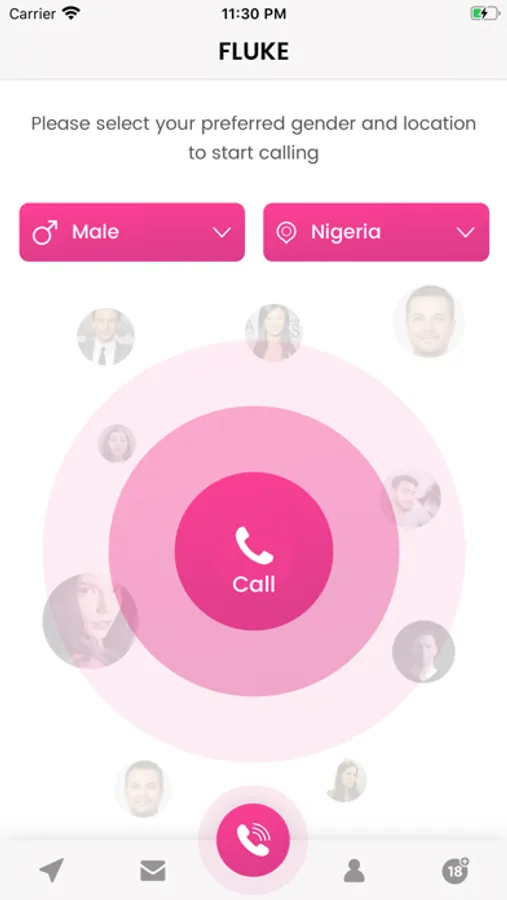 Make anonymous video calls by selecting your preferred gender and location to which you would like to be connected to. Fluke connects you to a random available user in your selected location to start a Video call.