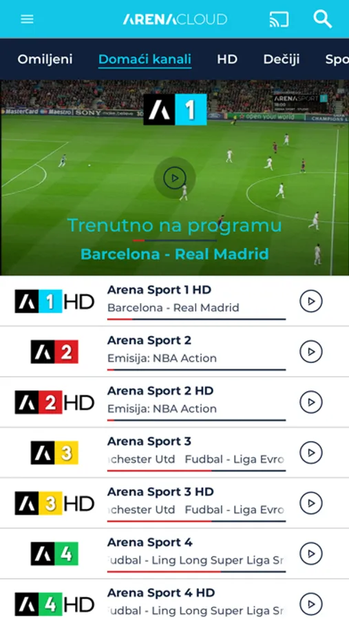 Sa aplikacijom ArenaCloud možete da pratite sve kanale iz bogate ponude regionalnog televizijskok giganta Arena Channels Group, vrhunske sportske kanale ARENASPORT 1-5 sa ekskluzivnim sportskim sadržajem, sve popularnije gejming okršaje i sve aktuelnosti iz najbrže rastuće industrije na svetu putem Arena Esport specijalizovanog kanala, budite VIP gosti na premijeri spotova regionalnih muzičkih diva i svedoci spektakularnih muzičkih događaja prateći program na kanalu Toxic TV, svoje omiljene heroje pratite kroz najbolji domaći i strani filmski i serijski program na kanalima Superstar TV i Star TV, najbolji regionalni putopisni program gledajte na kanalu Balkan Trip i saznajte sve što niste znali o prelepim turističkim destinacijama kojima smo okruženi a da toga nsmo ni svesni, saznajte najnovije informacije i poslušajte savete iz sveta poljoprivrede, saznajte gde su najpovoljnije cene vaših omiljenih namirnica ili se oprobajte u proizvodnji hrane uz najkvalitetniji poljoprivredni kanal u ovom delu Evrope, jer vam Agro TV to omogućava, a tu su svakako i klasici regionalne TV ponude poput kanala RTS 1, RTS HD, RTS Kolo, RTS Drama, RTS Poletarac, RTS Trezor, RTS Život, RTS Muzika, RTRS, BN, BN SAT, BN Music, Alternativna Televizija, OBN, K3, Hayat Folk, Hayat, Hayat Music, Hayat Plus, Hayatovci-dečiji kanal, kao i ostali brojni najbolji domaći terestrijalni i kablovski kanali.
