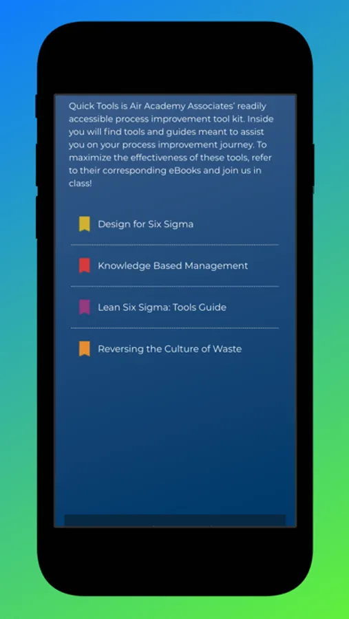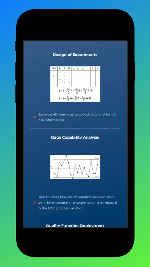 This app will help you identify some of the best approaches for gaining knowledge(KBM), review common LSS tools (LSS Tool Refresher), Map DFSS tools to tasks within the IDOV process (DFSS Tools Guide) and provide a great resource to benchmarking your continuous process improvement program (50 Best Practices).