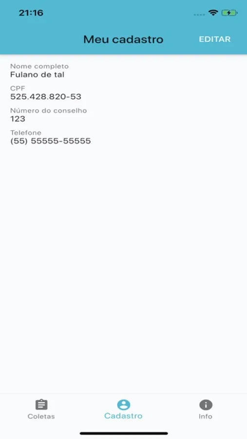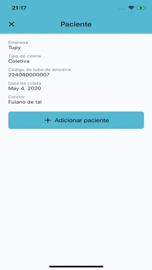 Aplicativo para profissionais previamente cadastrados registrarem coletas em pacientes de forma eficiente.