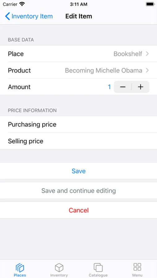 A public product catalogue helps you to create new entries quick and easy, especially when you use the internal barcode scanner.
