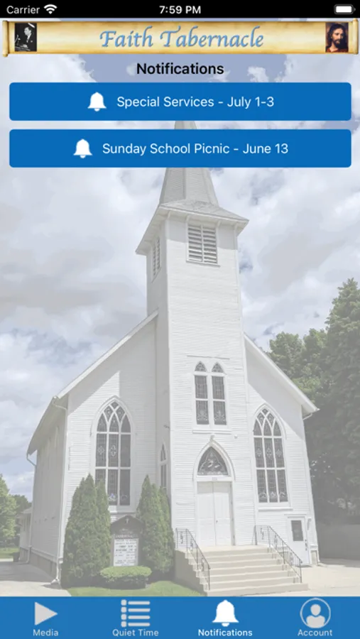 The Faith Tabernacle app provides media, notifications and devotional time tracking for our congregation in the midwest United States. While primarily designed to connect our local congregation and ministry using a personalized experience for those logged in, it also enables individuals to virtually connect with our services & ministry.