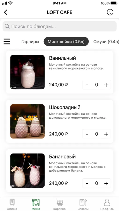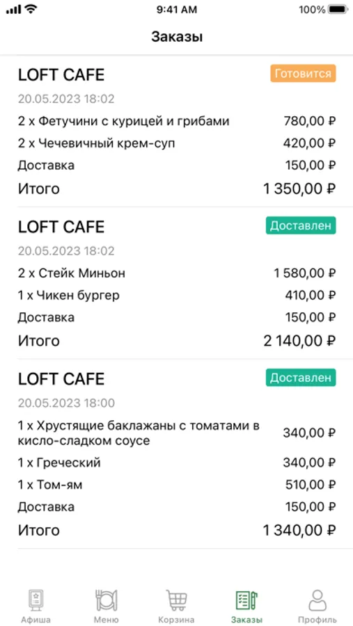 Заказы из LOFT CAFE принимаются с 11:00 до 23:00.