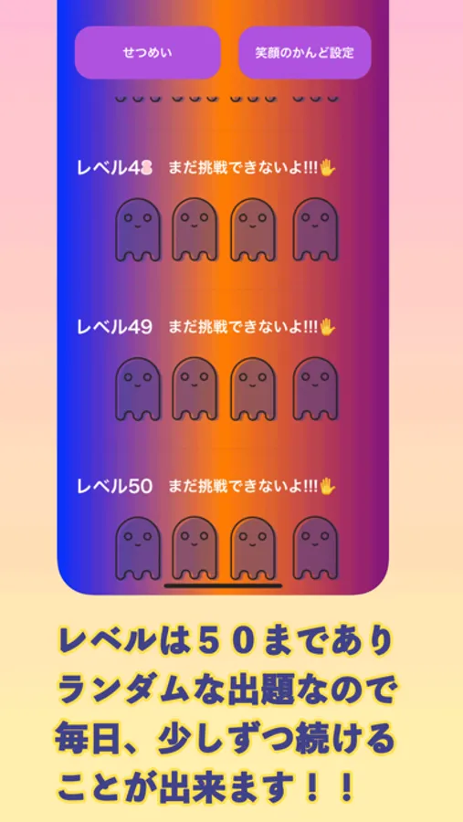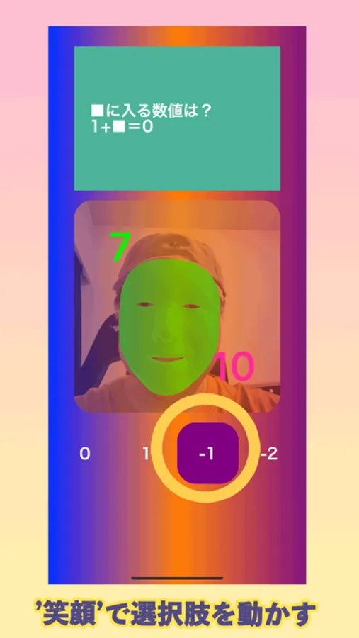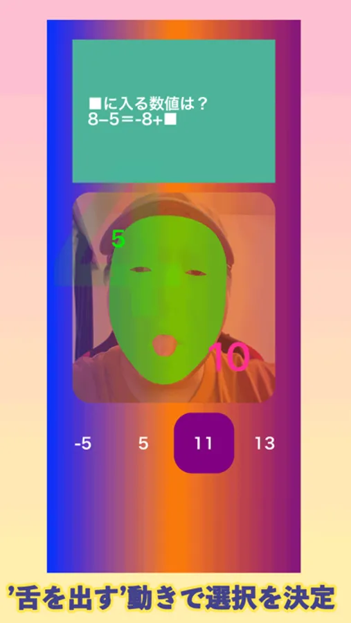 アプリがあなたの笑顔を認識すると、回答選択を動かし、舌を出す顔を認識すると、答え合わせを行います。