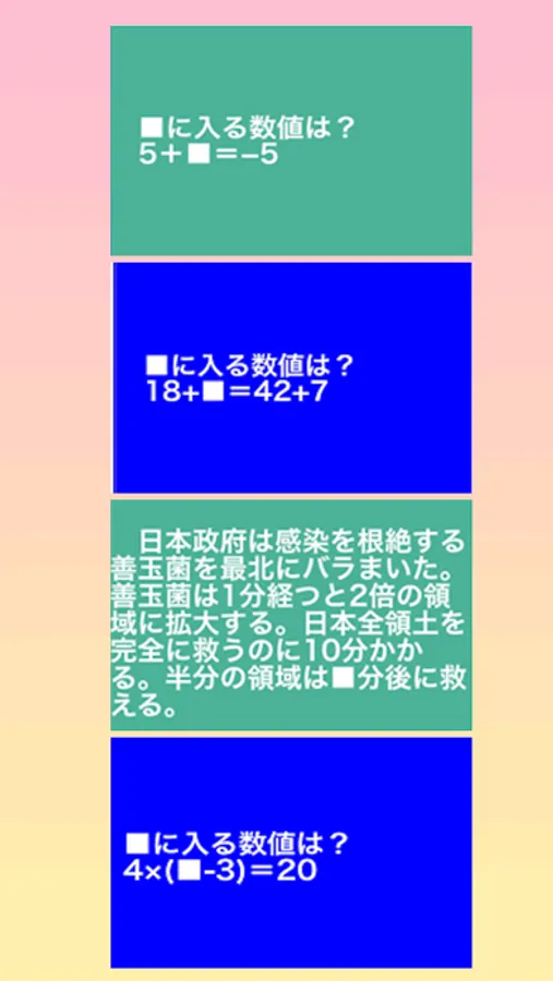 各レベルは,一度全問正解すると、次のレベルの問題を選択できます。点数は、正解した問題の回答残り時間が加算されていきます。