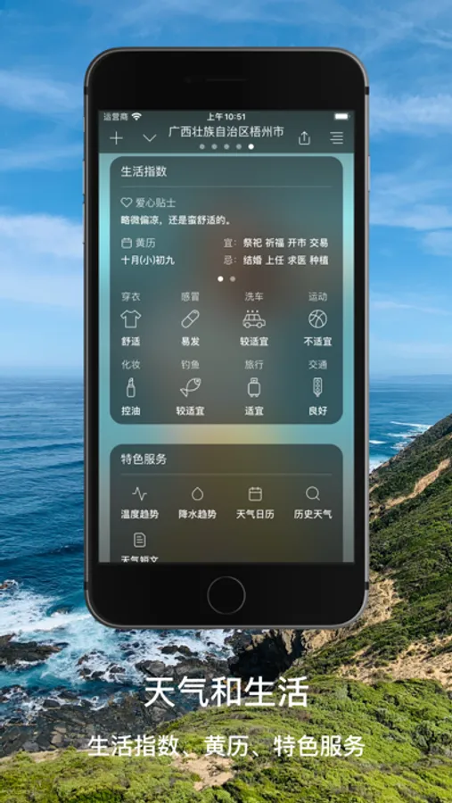 Real-time weather, minute-level precipitation, weather in the next 24 hours, weather in the next 15 days, disaster warning, probability of precipitation, air quality and life index, etc.
