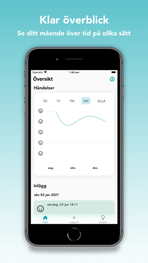- Tydlig översikt: Få en graf för att överskådligt kunna se ditt mående