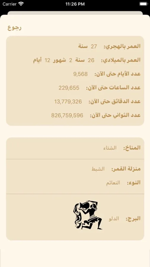 - يعطيك البرنامج معلومات طريفة عن عمرك مثل عدد الأيام والساعات والثواني التي مرت عليك في حياتك.