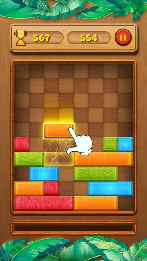 It moves the wooden block horizontally, filling the wood block with one line, and eliminating for high score.