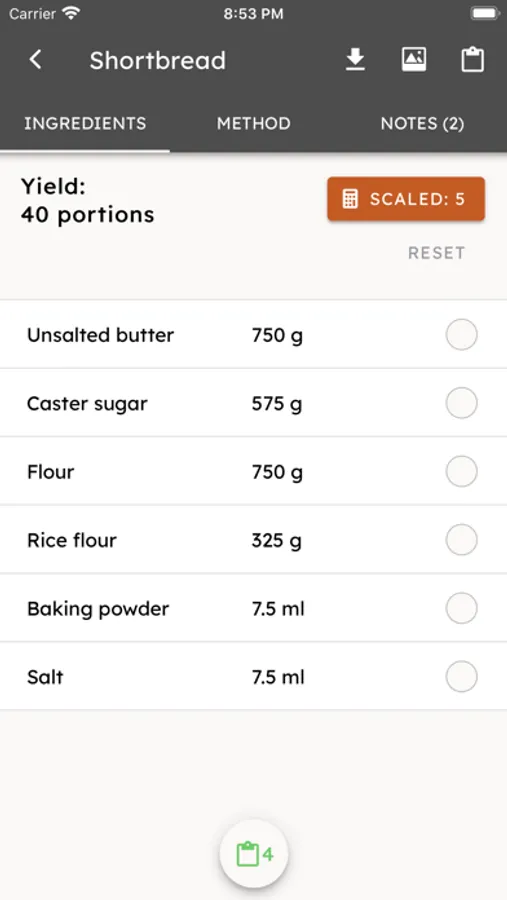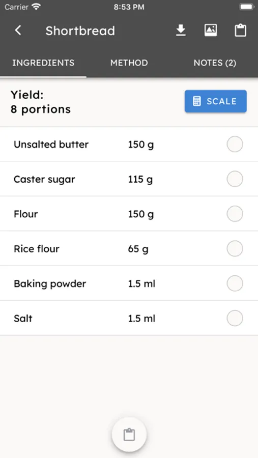 • The ability to adjust the recipe quantity automatically with the built-in scaling tool.