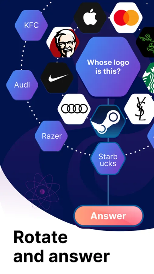 So how does our game work? As you expected from a logic puzzle game. You have questions, and you need to answer them. We designed a new style for quizzes. The main question is located right in the center, and there are two circles. One is for hint questions and another for answers. All you need to do is to match them. So it is a quiz game for adults with a puzzle element that looks like trivia. For each correct answer, you will get points. Ingeniously, isn’t it? Each card with a question gives you three tries. After that, you will lose all bonuses you’ve got while doing this card. Our game’s puzzles consist of interesting facts, some of them you know, some of them you will need to recollect. Don't worry we'll test your knowledge with a few mind games here and there.
