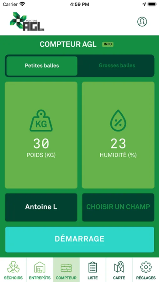 Bale tracking: the switch connected to your equipment count the hay bales produced. The application saves their GPS position and offers yield calculations. Personalize each work by producer name and / or by field name.