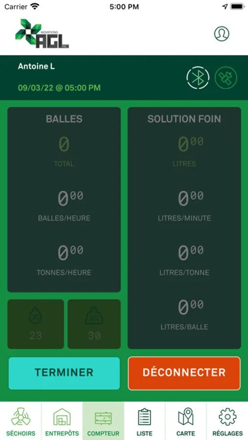 The Meter function communicates (Bluetooth) with a circuit installed directly on your hay baler to collect your production data in real time.