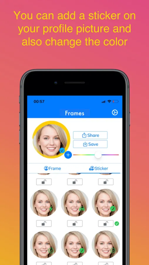 Add stickers and borders or circular for your social media profile picture. Also you can change the colors of your profile picture's stickers.