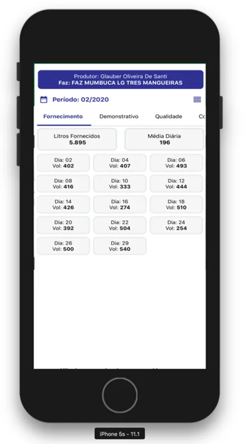 - Litragem de leite fornecidas diariamente