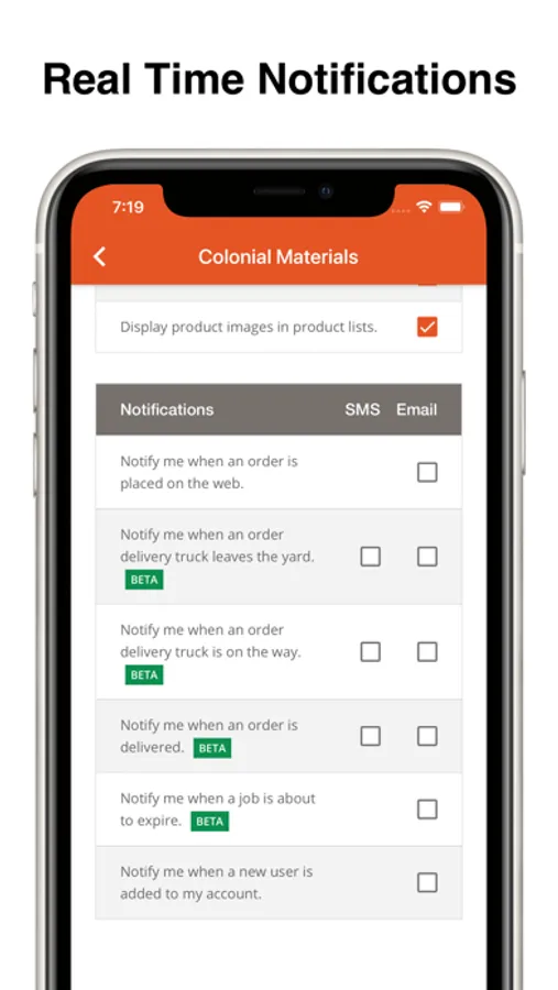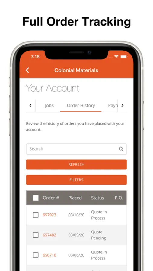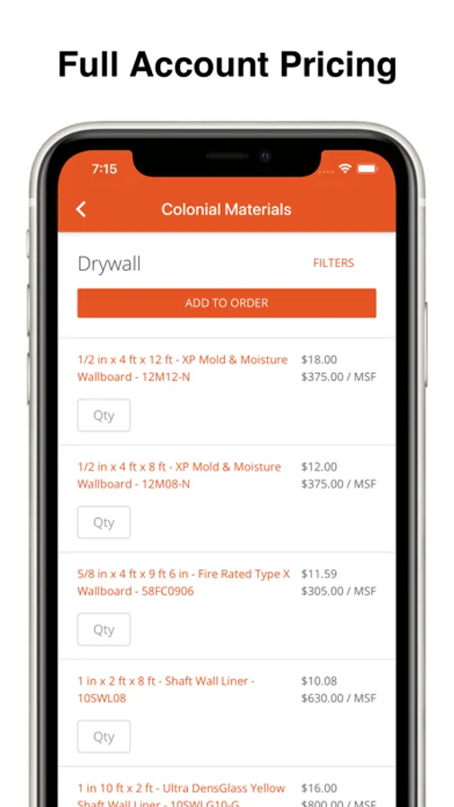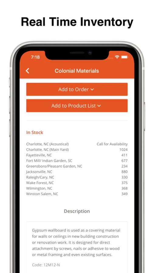 The Colonial Materials app features include full access to your online account and account pricing, as well as real time inventory and full order tracking.