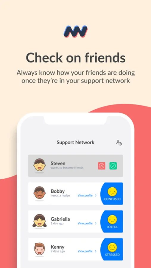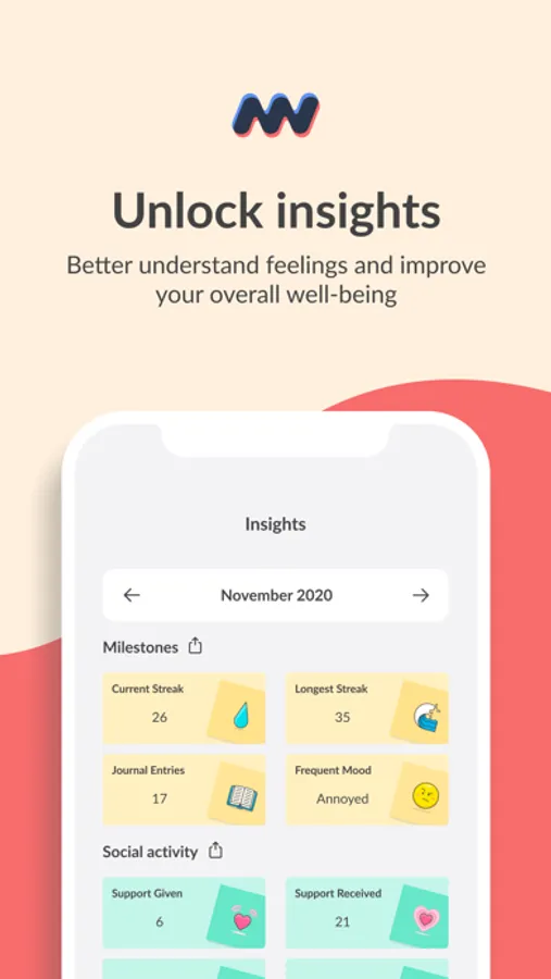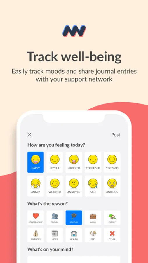 Moodwave lets you track daily moods and improve mental well-being through social journaling. Invite friends and family to join your support network. Easily check in and send each other supportive messages. Unlock insights and reflect deeper by answering guided journal prompts. Boost your mood with bite-sized meditation sessions. Be heard and get support from our safe, anonymous community whenever you need it.