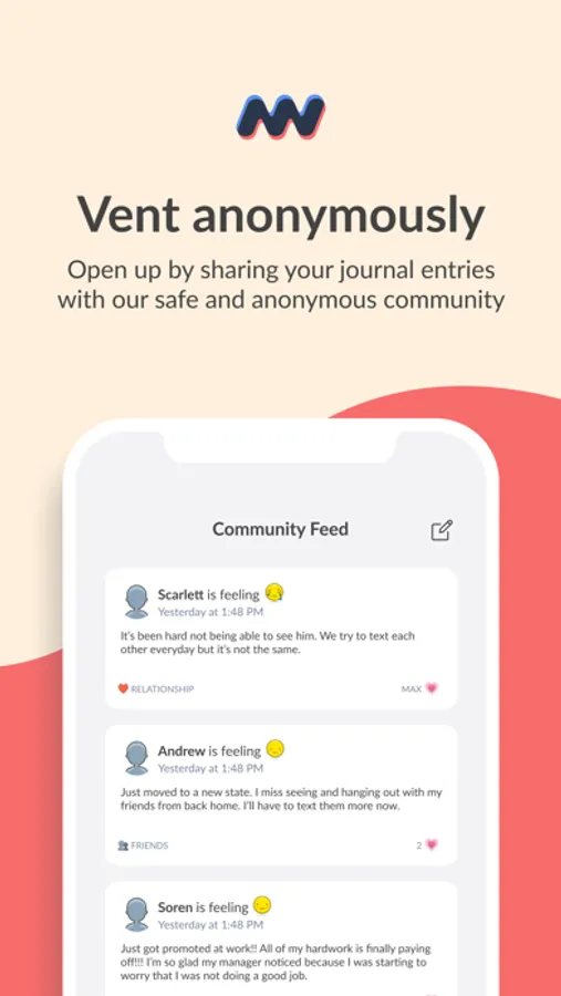 Moodwave is a social support network app based on journaling and positive vibes. Use Moodwave to track daily moods and build a meaningful social support network that you can depend on during times of stress. Moodwave also offers a safe place to anonymously vent and meet new people going through similar struggles.