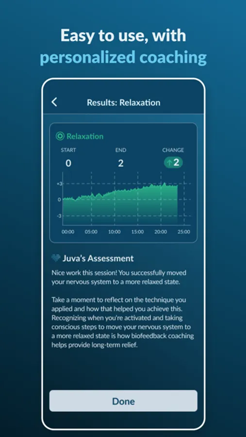 Easy-to-use Juva guides you through clinician-developed biofeedback exercises and displays your real-time results.