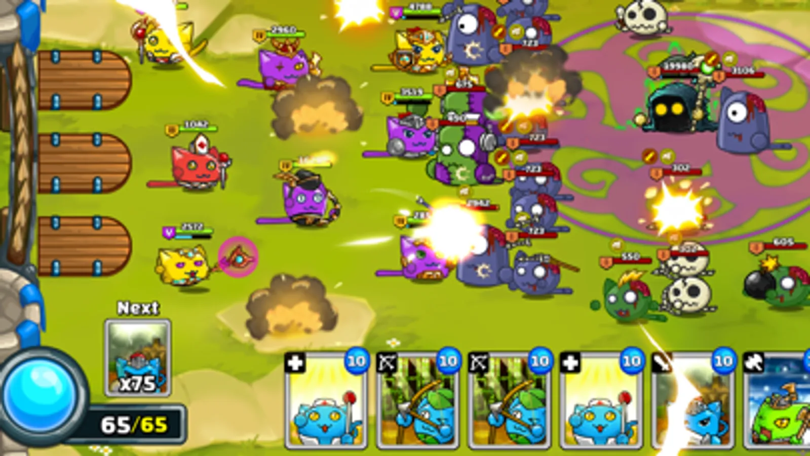 A strange disease outbreak A strange disease outbreak has transformed lovely Cat villagers into zombie cats, and now they are threatening the Cat civilization! As many villages fall, many more zombies appeared. Cats love peace and just want to be adorable. They have prepared nothing for this war! Seeing lots of fellow Cats losing their lives, a small group of Cats decided to seek help from God. God listened, trained the Cats into strong soldiers, and bestowed them powerful magic: Merge magic!