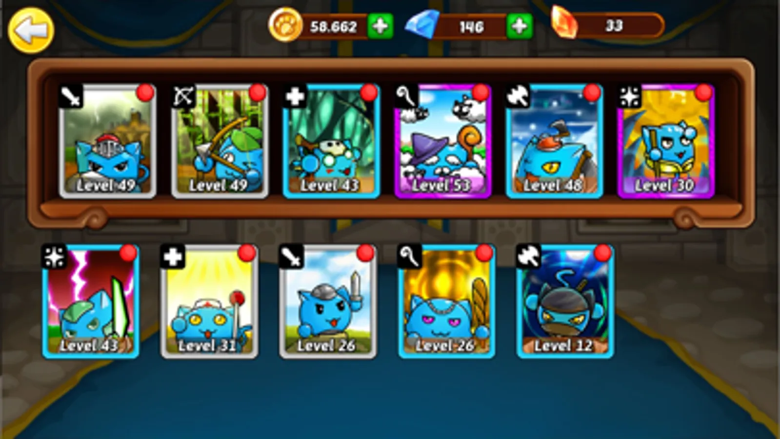 - Five levels max for each merged type. You can merge the same Cat or merge different Cat to find best strategy Cat team.