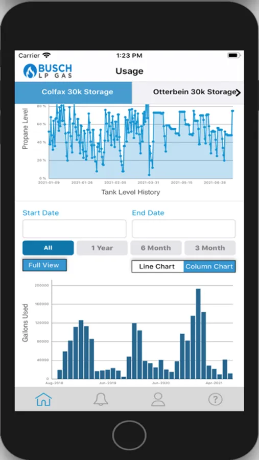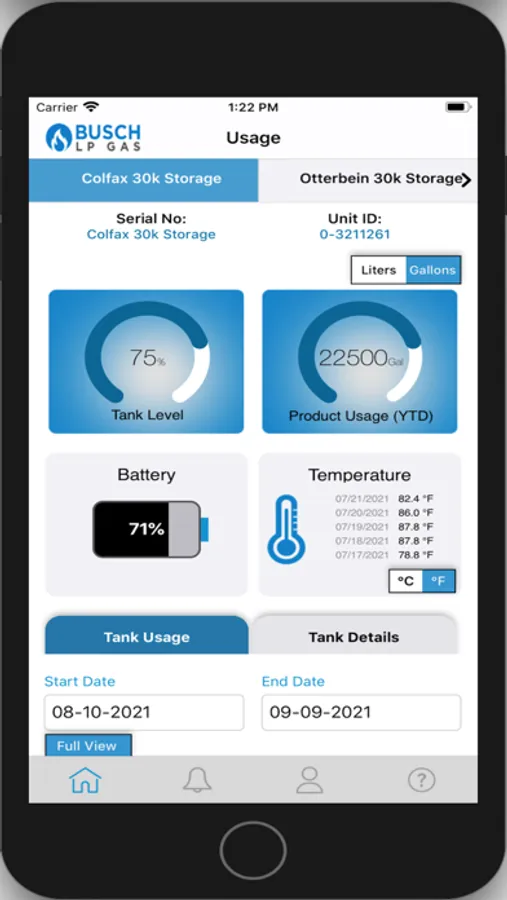 The OneTank app is an extension of the SkyTracker database. Powered by satellite and cellular-based SkyTrackers, data from various LPG, Diesel, Fuel Oil, NH3, and other tanks can be tracked and view within the app.