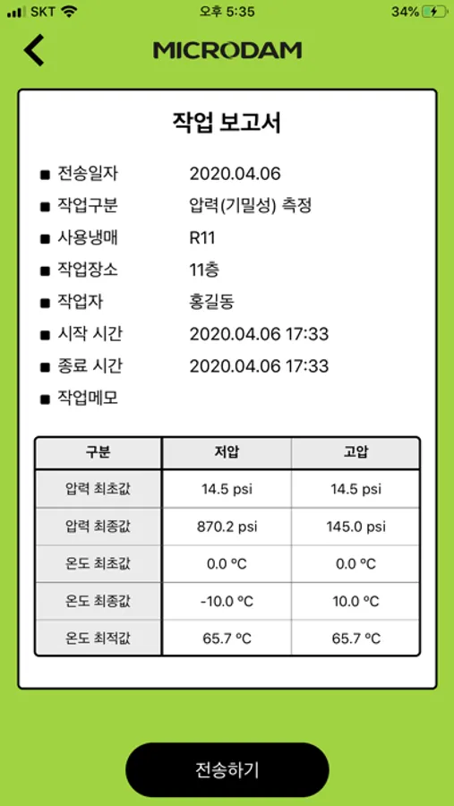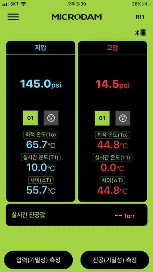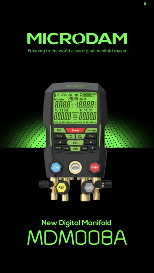 MICRODAM MDi application provides the measurement of pressure, vacuum, leak test, temperature of tube, and the function of saving/sharing the report of measurement through connecting with MICRODAM MDM008A digital manifold gauge.