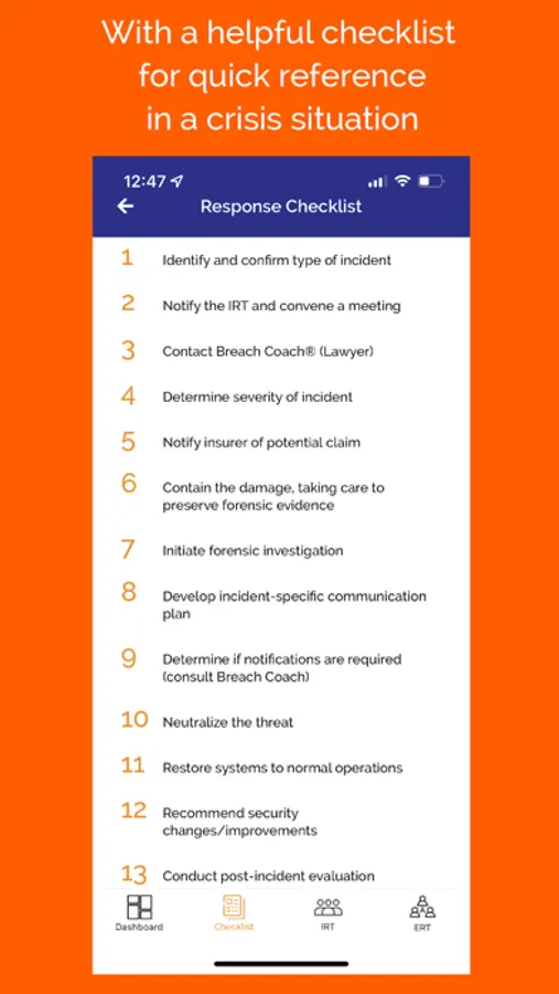 This app makes it possible for senior managers to access their breach response plan 24x7 and communicate securely even if their systems have been locked by ransomware or otherwise compromised.