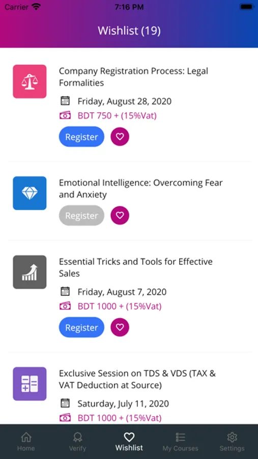 * Wishlist Training - Wishlist your preferred training course for easy access in the future.