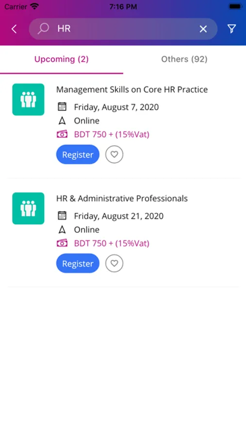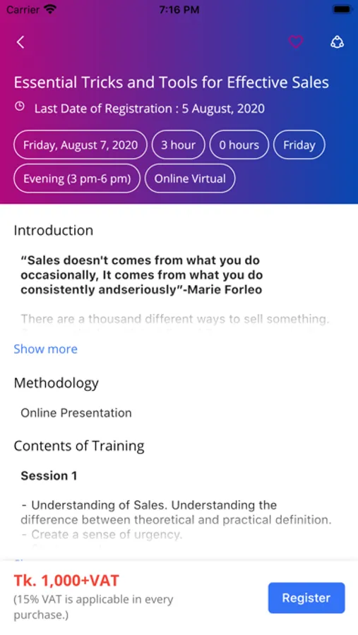 * Register Training - Register your favorite training course just by a single tap of your finger.