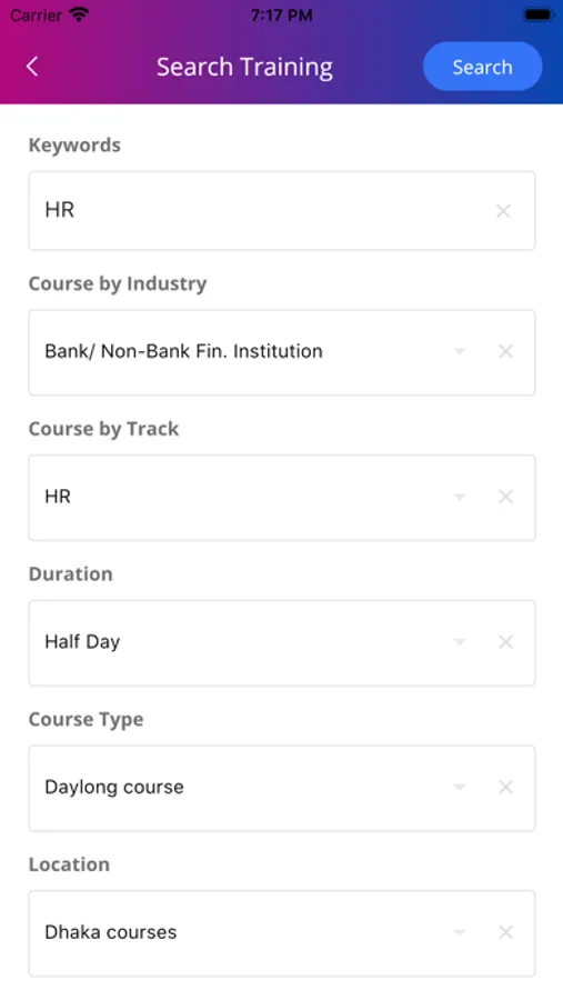 * Search Training - Searching training is easier than never before. Search your desired training courses and complete those to boost your career.