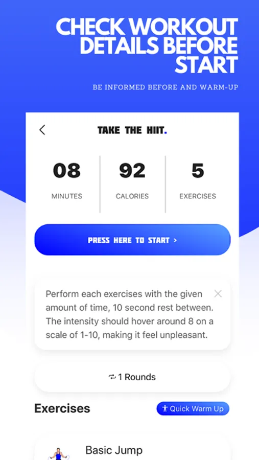- Customizable build-in interval timer you can manage your high-intensity interval workouts.