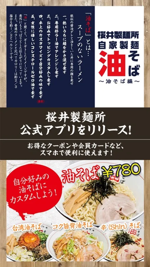不定期に配信される『桜井製麺所クーポン』はたくさん来店されるお客様の強い味方のクーポンです。