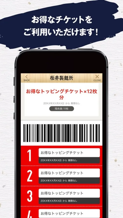 トッピングチケットや、ラーメンチケットをお得に購入していただけます。