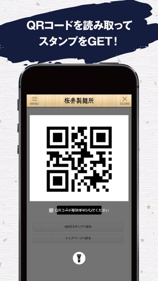 ●スタンプ画面からカメラを起動し、スタッフの提示するQRコードを読むことでスタンプがGETできます!