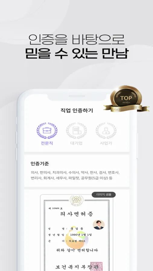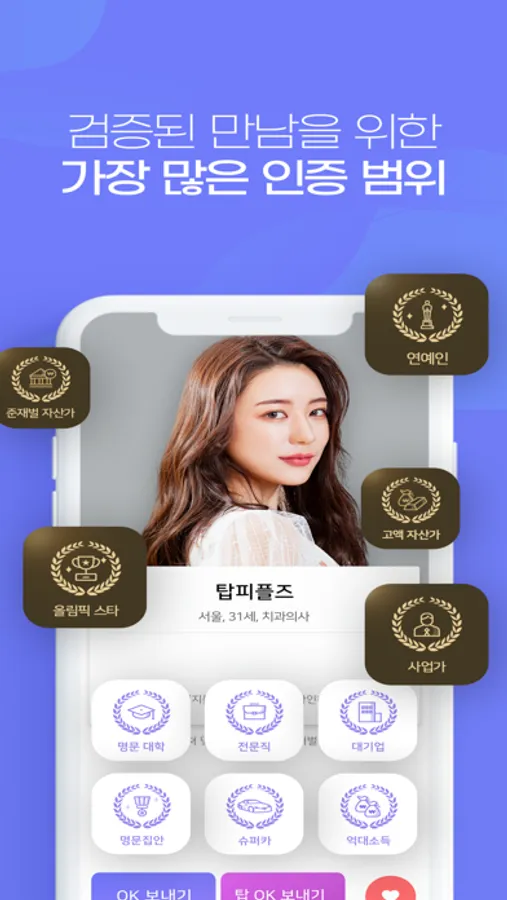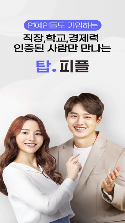 탑피플은 직장, 학교, 경제력 무엇하나 빠뜨릴 수 없는 사람들을 위해 만들어진 소개팅앱 입니다.