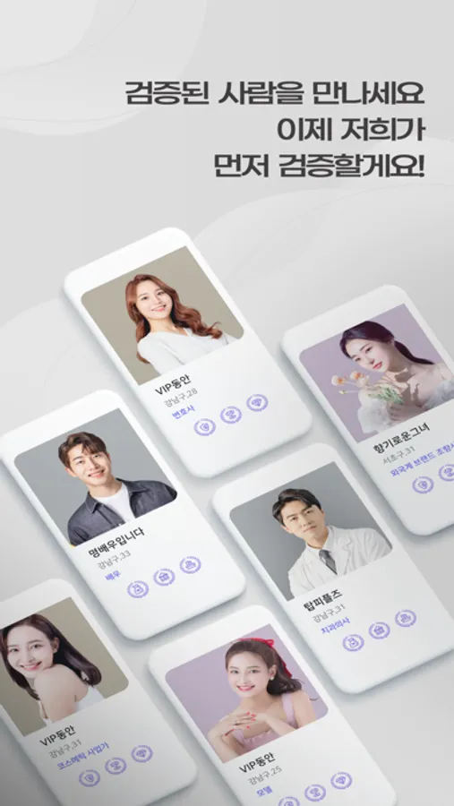 (본인 인증, 본인 사진 인증)을 통한 안전한 매칭을 보장합니다.