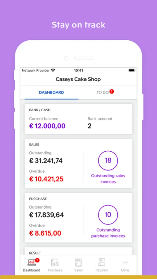 · Get up-to-date financial insights on an intuitive dashboard to make informed business decisions.