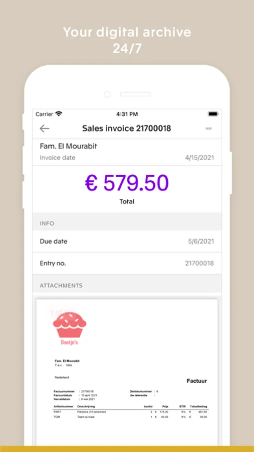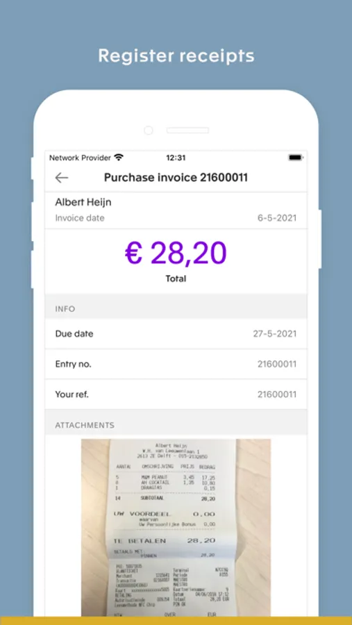 · Take a picture of an invoice or a receipt in the app, and your accountant can process it instantly.
