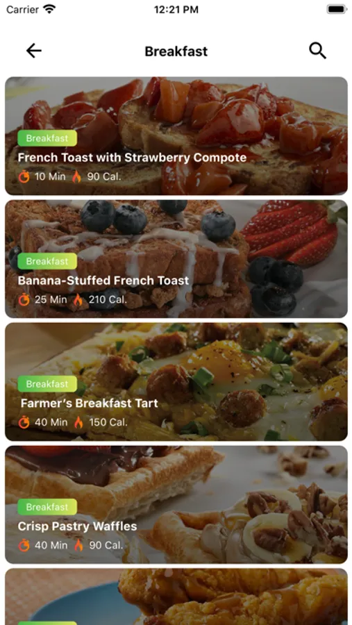- cooking time and calorie count