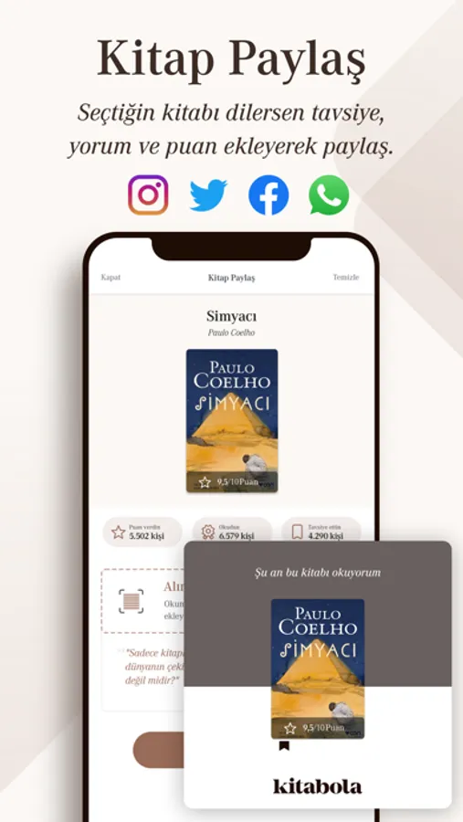 • Sosyal medyanızda kitap önerilerinizi hızlıca paylaşın.